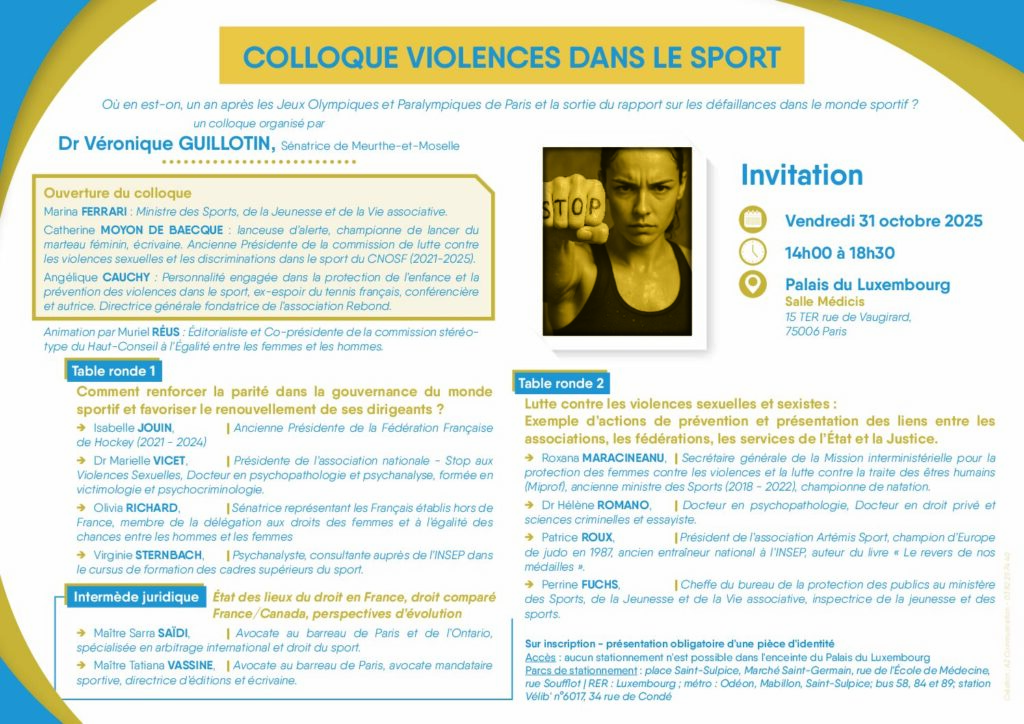Colloque sur les violences dans le sport au Sénat vendredi 31 octobre 2025